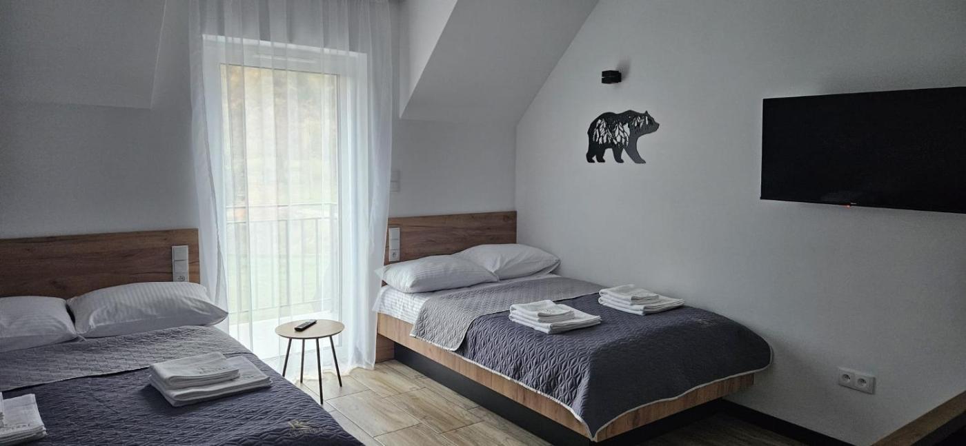 Pokój czteroosobowy z prywatną łazienką. Guests will find a stovetop, a refrigerator, kitchenware and an oven in the well-equipped kitchen. The quadruple room also has a barbecue. The quadruple room offers a tea and coffee maker, a wardrobe, a balcony with mountain views as well as a private bathroom featuring a shower. The unit offers 2 beds. Pokój Czteroosobowy - 4 osobowy. Powierzchnia pokoju ok.: 22 mkw. ;